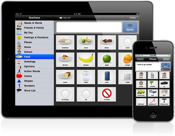 You see, I like to design and build software. More importantly, I like to design software that improves the life of the person using it. Sounds like a lofty goal, right? Well, let me introduce two of my apps. My first iPad application is called OneVoice and it helps anyone with a speech disability communicate. For example a child with non-verbal autism, who normally doesn’t speak at all, would use OneVoice to communicate with his family.